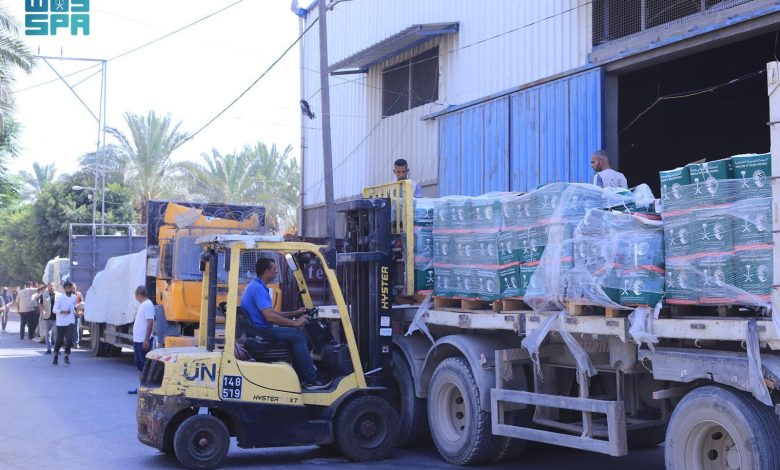 قافلة إغاثية سعودية جديدة تصل إلى وسط قطاع غزة مقدمة من مركز الملك سلمان للإغاثة