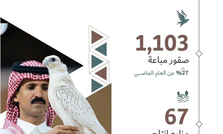 وأوضح المتحدث الرسمي لنادي الصقور السعودي وليد الطويل أن عدد الصقور المباعة بلغ 1103 صقور، فيما وصل عدد مزارع الإنتاج المشاركة إلى 67 مزرعة من 23 دولة، بينها 19 مزرعة محلية، مسجلًا ارتفاعًا في مؤشرات الأداء مقارنة بالعام الماضي، إذ ارتفعت قيمة المبيعات بنسبة 23%، وزاد عدد الصقور المباعة بنسبة 27%، والدول المشاركة بنسبة 21%، ومزارع الإنتاج بنسبة 20%، وهو ما يعكس النمو المتواصل الذي يشهده المزاد منذ انطلاقته.