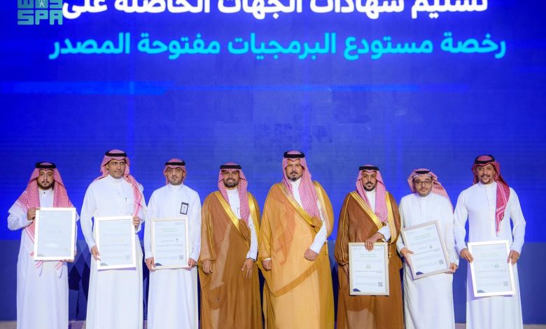 وفي ختام الحفل، كرّم سمو أمير منطقة المدينة المنورة عددًا من الجهات الحكومية الحاصلة على رخص البرمجيات مفتوحة المصدر، وذلك تقديرًا لدورها في تعزيز الإبداع الرقمي وتطوير الحلول التقنية المشتركة، حيث شمل التكريم كلًا من إمارة منطقة المدينة المنورة، وأمانة المنطقة، وهيئة تطوير المنطقة، والهيئة الملكية لمحافظة العلا، وجامعة طيبة، والجامعة الإسلامية.