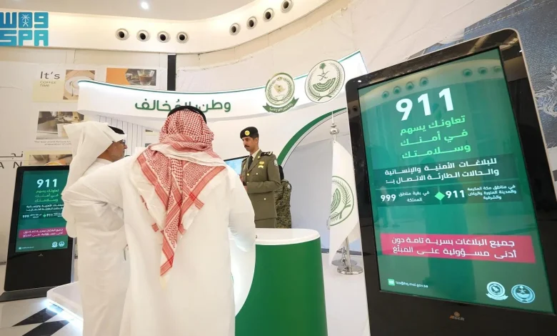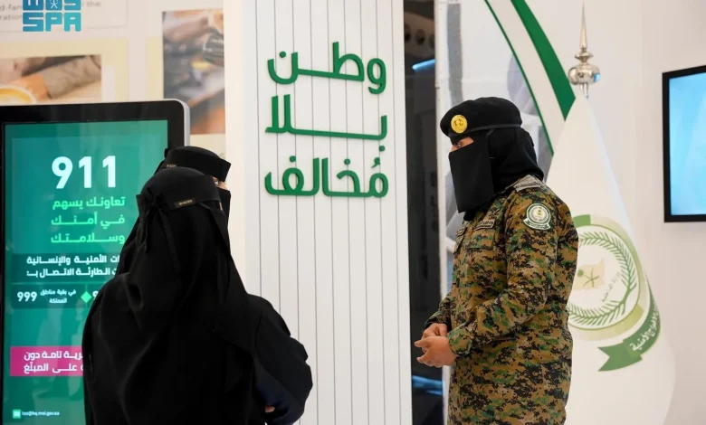 واستعرض المعرض، جهود الأفواج الأمنية في حملة “وطن بلا مخالف”، وتوضيح عقوبة من يسهل دخول مخالفي نظام أمن الحدود للمملكة أو نقلهم داخلها أو يوفر لهم المأوى أو يقدم لهم أي مساعدة أو خدمة بأي شكل من الأشكال، التي تصل إلى السجن مدة (15) سنة، وغرامة مالية تصل إلى مليون ريال، ومصادرة وسيلة النقل والسكن المستخدم للإيواء، والتشهير به، وطرق الإبلاغ عن مخالفي نظامي الإقامة وأمن الحدود بالاتصال بالرقمين (911) في مناطق مكة المكرمة والمدينة المنورة والرياض والشرقية، و(999) في بقية مناطق المملكة.