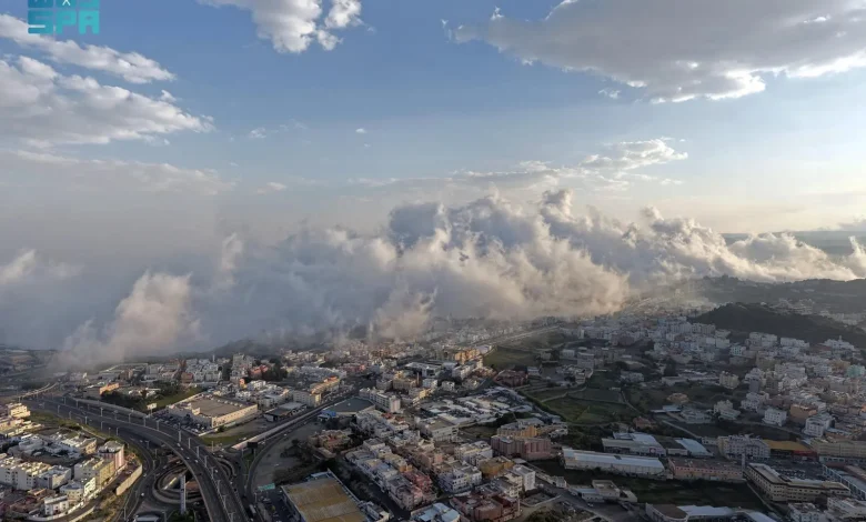 تزيّنت سماء مدينة أبها، اليوم، بمشاهد طبيعية آسرة، إذ تدفقت الغيوم الكثيفة على سفوح الجبال لتغمر أحياء المدينة، في لوحة بديعة تُجسّد ملامح دخول فصل الخريف إلى منطقة عسير.