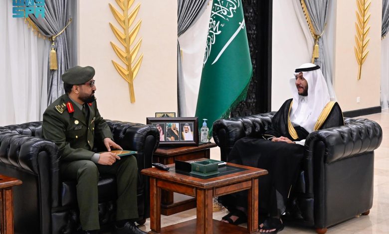 جاء ذلك خلال استقبال سموه لمدير جوازات المحافظة العميد عبدالله الزهراني ومدير جوازات المطار العقيد مشعل الجعيد.