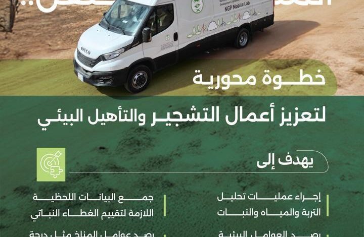 يُذكر أن استخدام “المختبر المتنقل” في أعمال التشجير، يُعدُّ دعامة رئيسة لنجاح مشاريع التشجير الكبرى، وإسهامه في توفير وتطوير قاعدة بيانات وطنية دقيقة عن حالة التربة والغطاء النباتي في المملكة، مما يُعزّز مكانتها إقليميًا ودوليًا.