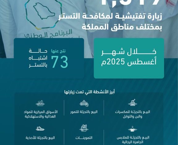 البرنامج الوطني لمكافحة التستر التجاري يُنفذ أكثر من (1500) زيارة تفتيشية خلال أغسطس