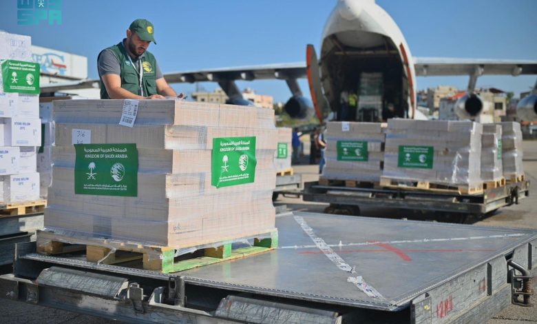 وفي ظل الأزمة الإنسانية التي يمر بها الشعب الفلسطيني الشقيق في قطاع غزة وأزمة المجاعة الكبيرة والوضع المعيشي المتدهور للمدنيين، سيّر المركز جسرًا جويًا وآخر بحريًا مكونًا من (62) طائرة و(8) سفن، حملت (7.552) طنًا من المواد الغذائية والطبية والإيوائية، وتسليم (20) سيارة إسعاف لجمعية الهلال الأحمر الفلسطيني، ووقّع المركز اتفاقيات مع منظمات دولية لتنفيذ مشاريع إغاثية داخل القطاع بقيمة (90) مليونًا و(350) ألف دولار، وتنفيذ عمليات إسقاط جوي لتجاوز إغلاق قوات الاحتلال الإسرائيلي المعابر الحدودية.