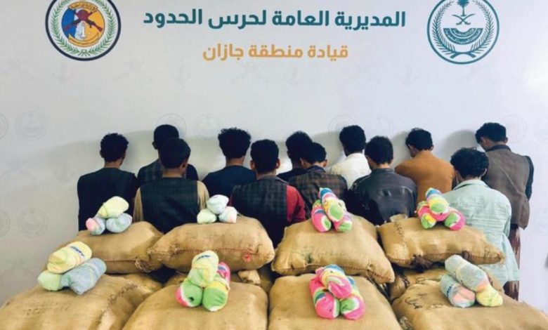 القبض على (12) مخالفًا لنظام أمن الحدود لتهريبهم (206) كيلوجرامات من نبات القات المخدر بمنطقة جازان