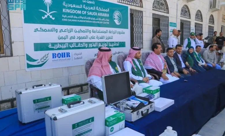 مركز الملك سلمان للإغاثة يوزع منحة بذور وحقائب بيطرية للمستفيدين في محافظة مأرب