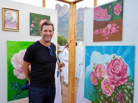 و اربعة اعمال مفاهيمية، وركناً للرسم الحي، اضافة لورشة لتنسيق الورد، وركناً للخط العربي. وتجول “الخديدي” ومرافقيه داخل ارجاء المعرض واستمع الى شرح مفصل عن محتوياته من الفنانة “امجاد النفيعي”منسقة المعرض. والتي قالت ان المعرض يأخذ الزائر في رحلة سياحية بصرية يبرز فيها الطائف من منظور احتوائه على مواقع مناسبة للسياحة والاستشفاء توثيقا لجمالها.