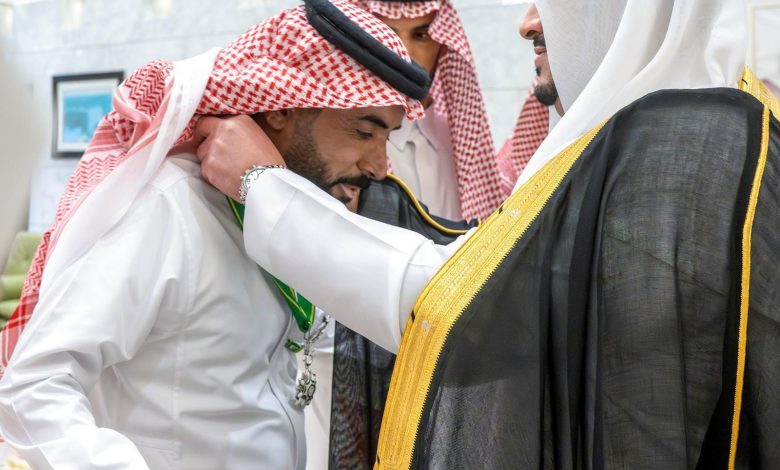 إنفاذًا لأمر خادم الحرمين الشريفين بناء على ما رفعه سمو ولي العهد.. نائب أمير منطقة الرياض يُسلم وسام الملك عبدالعزيز من الدرجة الأولى للمواطن ماهر الدلبحي
