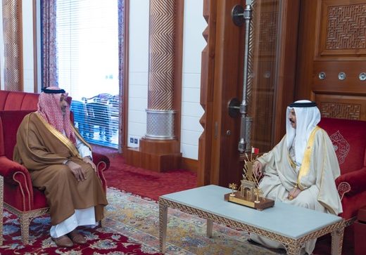 استقبل حضرة صاحب الجلالة الملك حمد بن عيسى آل خليفة، ملك مملكة البحرين ، حفظه الله ورعاه، هذا اليوم في قصر الصافرية، صاحب السمو الملكي الأمير فيصل بن سلمان بن عبد العزيز آل سعود، المستشار الخاص لخادم الحرمين الشريفين، ورئيس مجلس دارة الملك عبدالعزيز، ورئيس مجلس أمناء مكتبة الملك فهد الوطنية، وذلك للسلام على جلالته بمناسبة زيارته للمملكة.