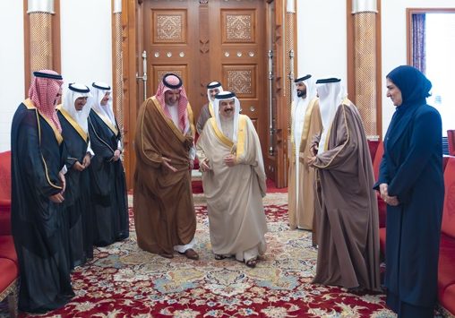 ورحب جلالته، في بداية الاستقبال، بصاحب السمو الملكي الأمير فيصل بن سلمان بن عبد العزيز آل سعود، وأبلغه بنقل تحياته إلى أخيه خادم الحرمين الشريفين وصاحب السمو الملكي ولي العهد رئيس مجلس الوزراء، وأطيب تمنياته لهما بموفور الصحة والعافية، وللشعب السعودي الشقيق دوام الرخاء والازدهار.