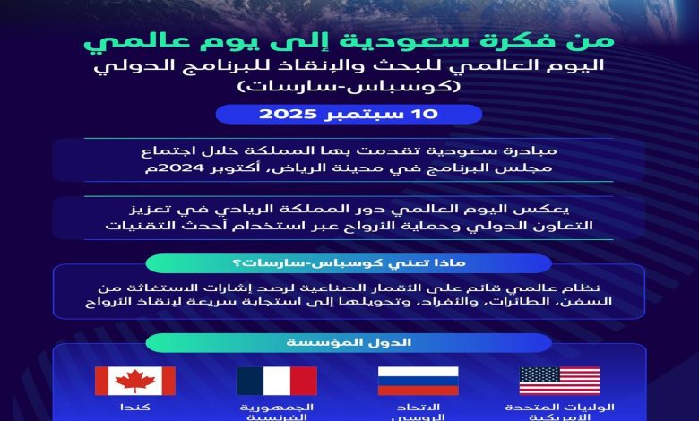 وأضاف: “يصادف هذا اليوم 10 سبتمبر ذكرى أول عملية إنقاذ ناجحة تمت عبر استخدام بيانات النظام في عام 1982م، وهو يوم يكرّم الجهود الإنسانية والجهود التي يبذلها المتخصصون في مراكز البحث والإنقاذ وتنسيق مهامها حول العالم”.