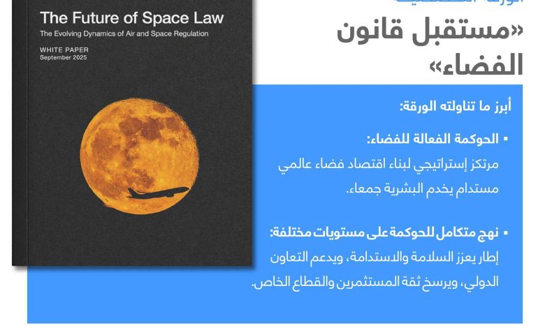 أصدر مركز مستقبل الفضاء الورقة التخصصية الأولى من نوعها بعنوان “مستقبل قانون الفضاء”، ضمن سلسلة من الدراسات التي تستعرض كيفية الاستفادة من النماذج الدولية في الحوكمة لتعزيز الإطار القانوني العالمي للفضاء.