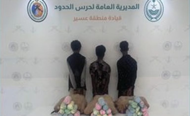 القبض على 3 مخالفين لنظام أمن الحدود بمنطقة عسير لتهريبهم 144 كيلوجرامًا من نبات القات المخدر