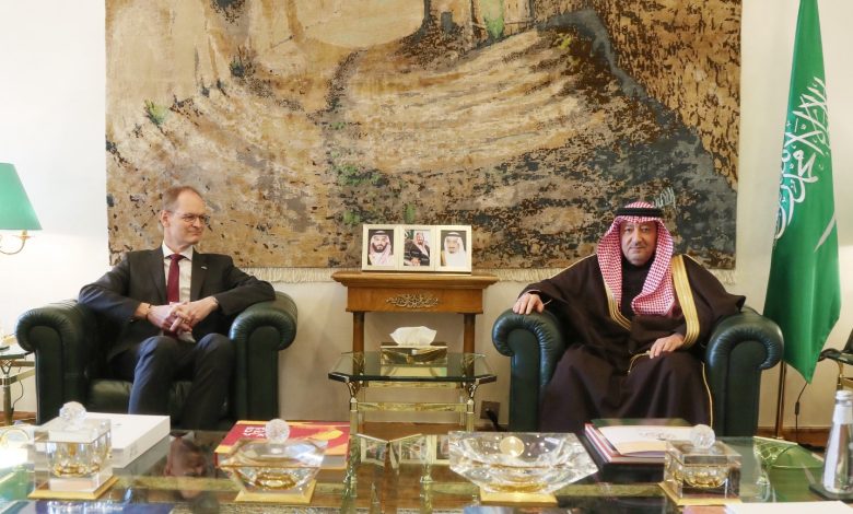 استقبل معالي نائب وزير الخارجية المهندس وليد بن عبدالكريم الخريجي، في مقر الوزارة بالرياض، اليوم، معالي سكرتير الدولة بوزارة خارجية جمهورية ألمانيا الاتحادية غيزا أندرياس فون.