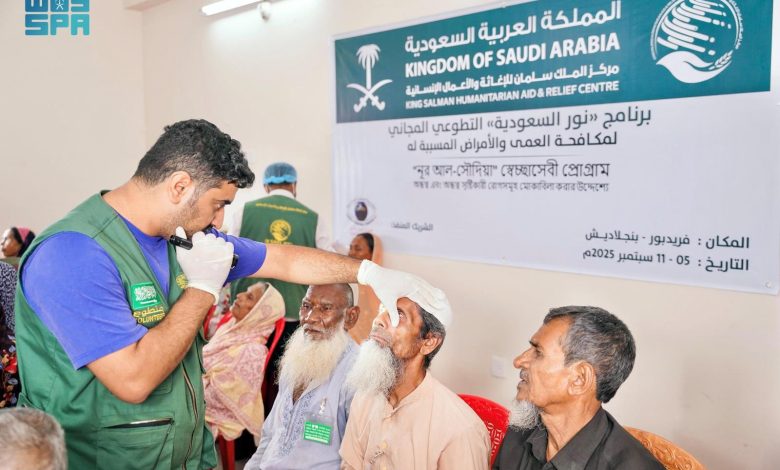 اختتم مركز الملك سلمان للإغاثة والأعمال الإنسانية مشروع نور السعودية التطوعي لمكافحة العمى والأمراض المسببة له، في مدينة فريدبور بجمهورية بنغلاديش الشعبية، والمقام خلال الفترة من (6 حتى 11 سبتمبر 2025م)، بالتعاون مع مؤسسة البصر العالمية.