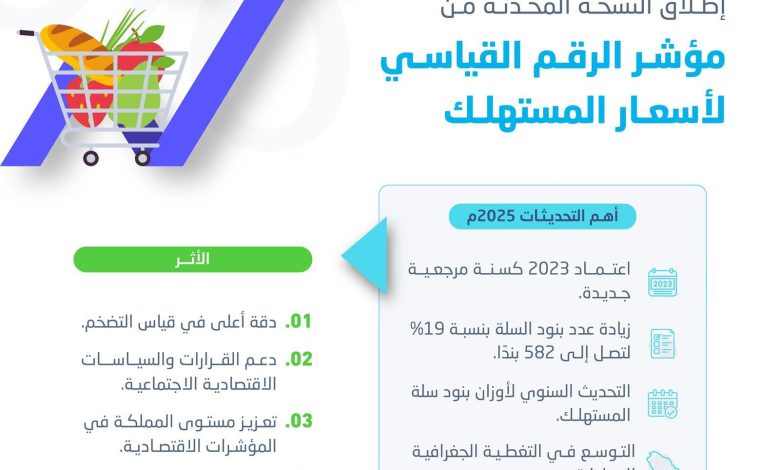 وفي هذا الإطار، أوضحت الهيئة العامة للإحصاء، أن تطوير منهجية الرقم القياسي لأسعار المستهلك جاء لتعزيز دقة قياس التضخم الفعلي في الاقتصاد السعودي ومنسجمةً مع أفضل الممارسات العالمية والأدلة الاسترشادية الدولية ذات العلاقة، ومن أبرز التحديثات التي اشتملت عليها هذه المنهجية تطوير آلية جمع بيانات الأسعار وأوزان سلة المستهلك وتنويع مصادرها؛ حيث تستند الأوزان إلى بيانات مسح إنفاق ودخل الأسرة لعام 2023م، إضافة إلى بيانات الإنفاق الاستهلاكي العائلي في الحسابات القومية، وبيانات منصة إيجار، وبيانات سجليه أخرى لعددٍ من الجهات, وحُدثت السنة المرجعية للمؤشر من عام 2018م إلى عام 2023م بما يضمن عكس المؤشر للواقع الفعلي لأنماط الإنفاق.