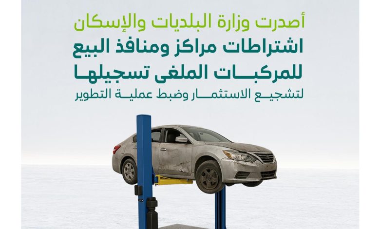 “البلديات والإسكان” تصدر اشتراطات مراكز ومنافذ بيع المركبات المُلغى تسجيلها