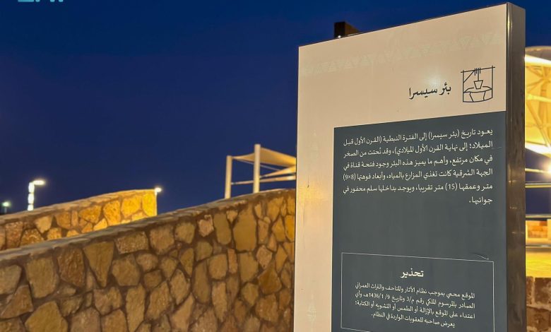 وتبرز من بين هذه المواقع بئر سيسرا في مدينة سكاكا، المنحوتة في الصخر منذ الحقبة النبطية ما بين القرن الأول قبل الميلاد والقرن الأول الميلادي، بعمق يصل إلى 15 مترًا، وتتميز بفتحة شرقية تغذي المزارع عبر قناة مائية منحوتة في الصخر.