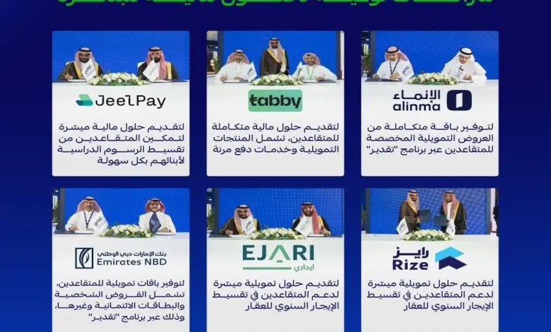 كما شملت الاتفاقيات توقيع مذكرات تفاهم تهدف إلى توفير حلول تقسيط الرسوم الدراسية، والاستفادة من خيارات تقسيط الإيجار، إضافة إلى تقديم منتجات وحلول مالية مبتكرة للمتقاعدين بالشراكة مع القطاعين العام والخاص.
