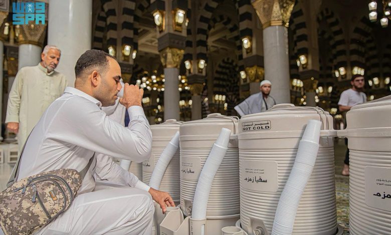 (183) طنًا من مياه زمزم لسقيا المصلين بالمسجد النبوي اليوم الجمعة