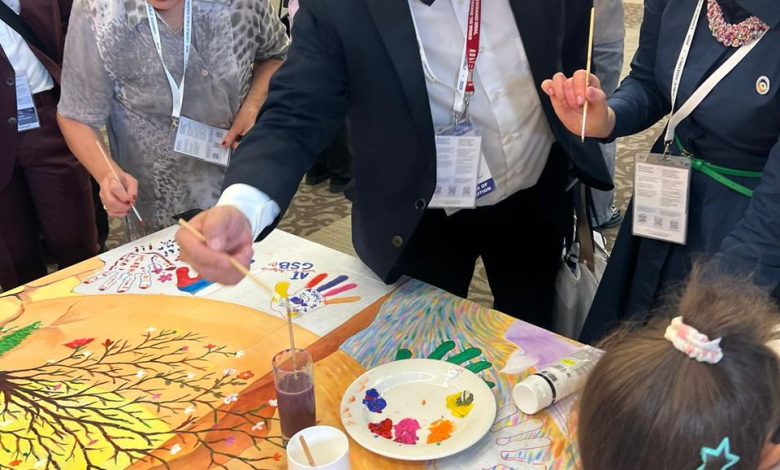 وتخلل القمة معارض فنية كبرى، من أبرزها معرض المهرجان الدولي “العالم يرسم السعادة” الذي انطلق عام 2023، ويجمع بين الإبداع الحيّ والتقنيات الرقمية، ويعرض نحو 60 عملاً فنيًا لأطفال وشباب من أفريقيا وروسيا والهند وأوزبكستان ودول أخرى، حول محاور السعادة في الوطن والأسرة والمجتمع. كما أقبم على هامش القمة معرض مشروع “ملائكة السلام”، الذي يضم عملاً فنيًا فريدًا يجمع 366 لوحة لفنانين من 25 دولة، في صياغة فنية تعكس وحدة التنوع الإنساني.