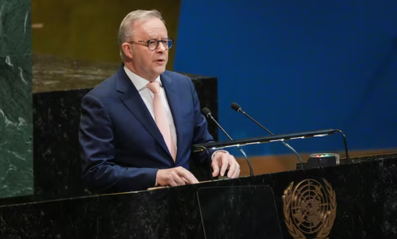 أعلن رئيس وزراء أستراليا أنتوني ألبانيز اعتراف بلاده بدولة فلسطين, مشددًا على أن الاعتراف بتطلعات الشعب الفلسطيني لا يقتصر على مجرد مقعد أو صوت، بل يتعلق بوطن حقيقي.