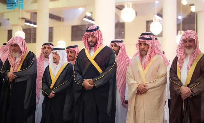 سمو ولي العهد يؤدي صلاة الميت على سماحة الشيخ عبدالعزيز بن عبدالله بن محمد آل الشيخ -رحمه الله-