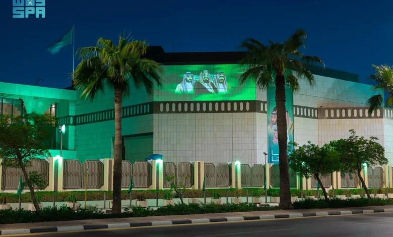 مبنى إمارة المنطقة الشرقية يتزيّن باللون الأخضر احتفاءً باليوم الوطني الـ 95
