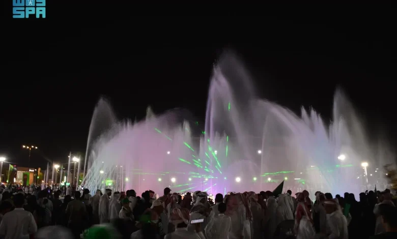 وشمل الاحتفال عروضًا مرئية وصوتية، ومشاركة للفنون الشعبية، وفقرات للرسم التشكيلي، إلى جانب عروض الليزر والشاشة المائية والأغاني الوطنية، وتوزيع الورود والأعلام الوطنية، في النافورة التفاعلية، إضافة إلى عروض الحديقة الضوئية في متنزّه الملك فهد.