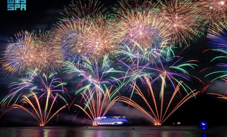 وشهد موقع الألعاب النارية حضورًا لافتًا من الأهالي والزوار، للاستمتاع بمشاهدة العروض والألوان التي شكلتها الألعاب النارية، ورسمت من خلالها لوحات جمالية لفتت الأنظار، وسط تفاعل من الحضور بهذه المناسبة.