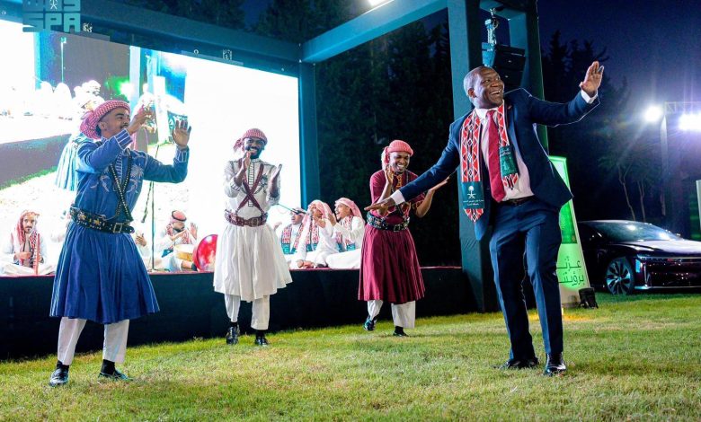 وخلال الحفل قدمت فرقة فلكلورية لوحات فنية من التراث السعودي, وضم الحفل منصة قدمت لمحات من الحرف اليدوية السعودية.