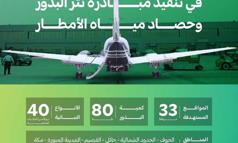 يعمل المركز الوطني لتنمية الغطاء النباتي ومكافحة التصحر بالتعاون مع برنامج استمطار السحب على تنفيذ مبادرة نثر البذور وحصاد مياه الأمطار؛ بهدف تأهيل وتنمية الغطاء النباتي في (33) موقعًا موزعة على مختلف مناطق المملكة.