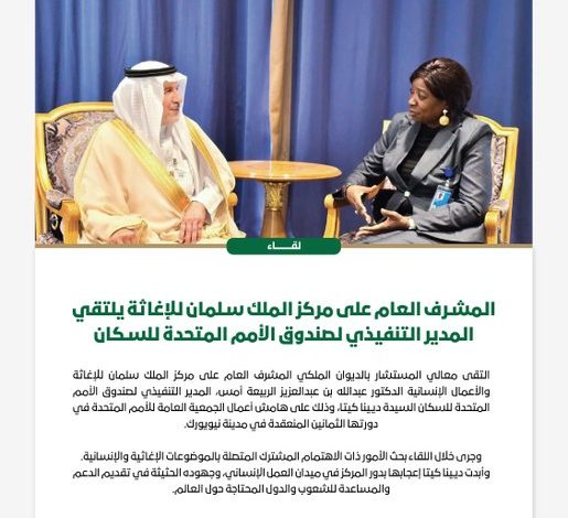 المشرف العام على مركز الملك سلمان للإغاثة يلتقي المدير التنفيذي لصندوق الأمم المتحدة للسكان