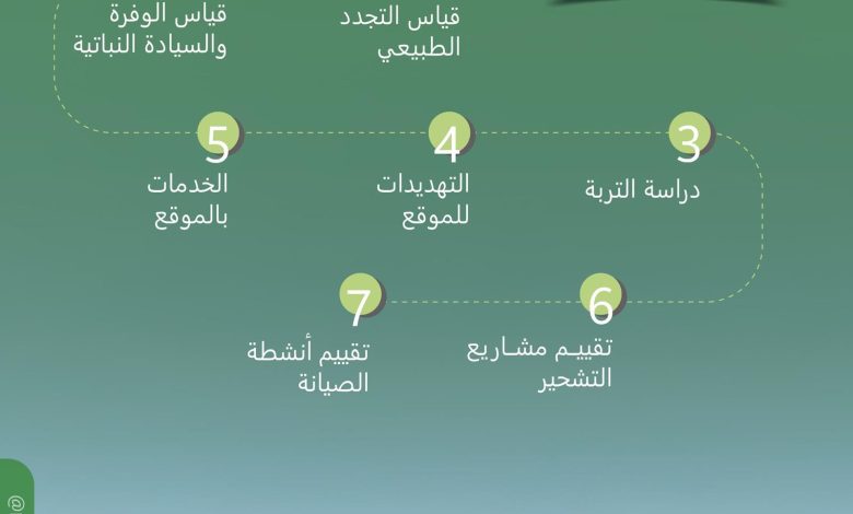 وبين أنه بعد ذلك يجري التأكد من مطابقة الموقع لمعايير إعادة التأهيل، استنادًا إلى التحليلات الفنية وتوجيهها إلى المختصين لبدء عملية التحقق الميداني، الذي يشمل رصد التجدد الطبيعي وقياسه، من حيث والوفرة والسيادة النباتية، إضافةً إلى رصد وجود نباتات غازية ودراسة التربة؛ من خلال قياس معدل الانجراف ودرجة الانضغاط ونسبة الحصى وزحف الرمال ومعدل النفاذية.