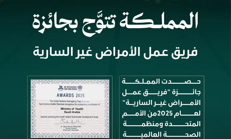 المملكة تُكرَّم بجائزة أممية تقديرًا لجهودها في مكافحة الأمراض غير السارية