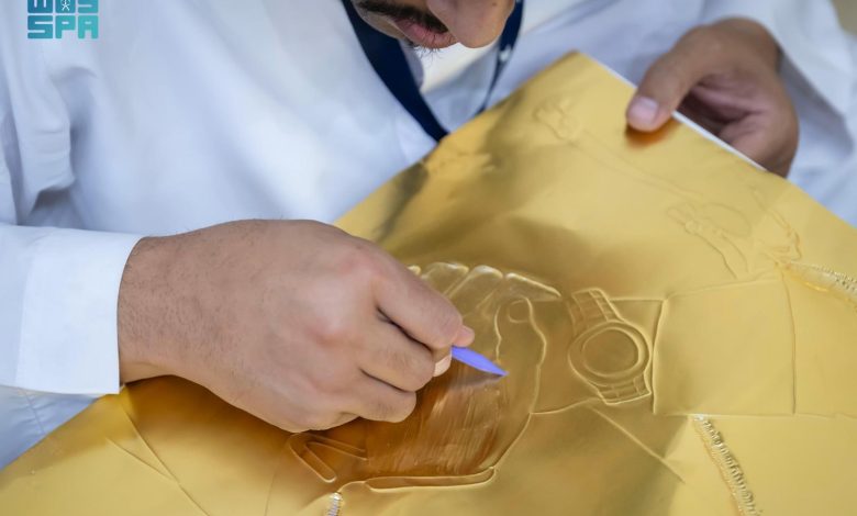 إرادة تتحول إلى إبداع.. فنان من ذوي الإعاقة يشارك بلوحات نحاسية في معرض الصقور والصيد