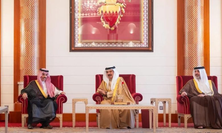 استقبل جلالة الملك حمد بن عيسى آل خليفة ملك مملكة البحرين، في قصر الصافرية بالعاصمة البحرينية المنامة، اليوم، صاحب السمو الأمير فيصل بن فرحان بن عبدالله وزير الخارجية.