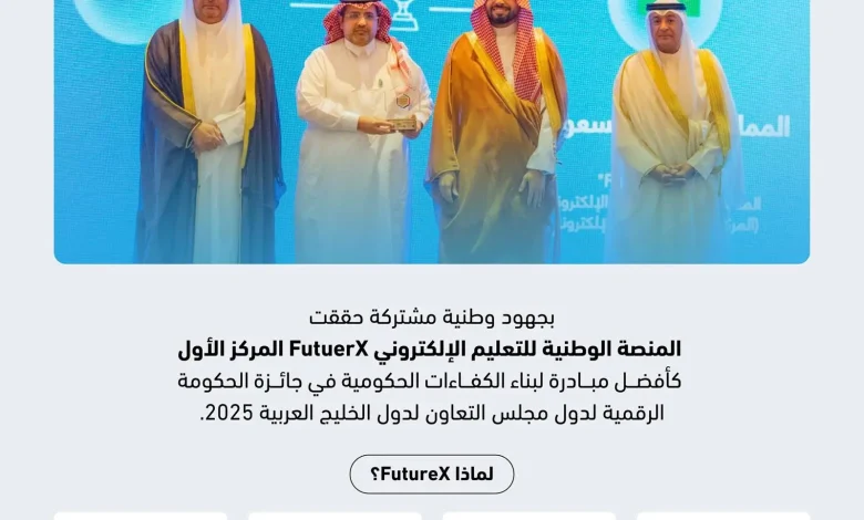 المنصة الوطنية للتعليم الإلكتروني “futurex” تفوز بجائزة الحكومة الرقمية الخليجية 2025
