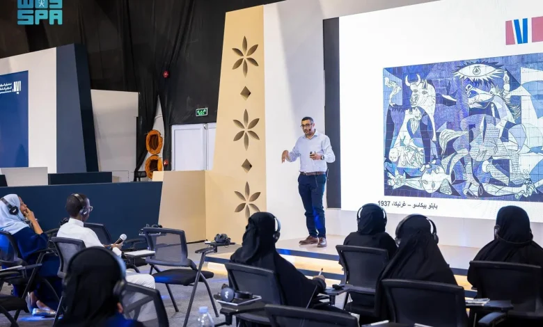 وأقيمت ورشة أخرى بعنوان “كيف نقرأ القصة خلف اللوحات الفنية” تناولت العلاقة بين الفنون البصرية والسرد الأدبي، مسلطةً الضوء على البعد الحكائي الذي يمكن اكتشافه في الأعمال التشكيلية، ومفهوم “القراءة السردية للوحة” بوصفه منهجًا نقديًّا يساعد على فهم العمل الفنّي خارج إطار اللون والخط والتقنية، من خلال النظر إلى عناصر القصة الكامنة في اللوحة مثل الحدث، والمكان، والزمان، والشخصيات، موضحًا أن هذه المقاربة تمكّن المتلقي من التعامل مع اللوحة بوصفها نصًّا بصريًّا قابلًا للتأويل والتحليل تمامًا كما يُقرأ النصُّ الأدبي.