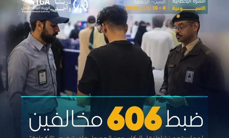 هيئة النقل تضبط خلال أسبوع أكثر من 606 مخالفين لممارستهم نشاط نقل الركاب دون ترخيص