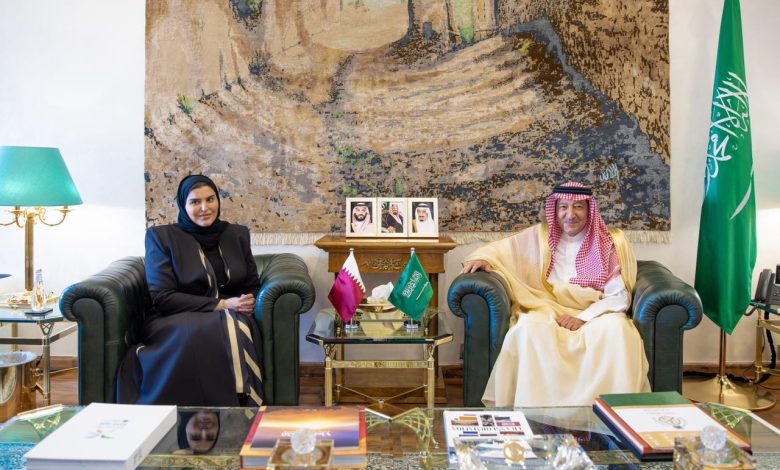 حضر الاستقبال، صاحب السمو الملكي الأمير سعد بن منصور، وسفير دولة قطر لدى المملكة بندر محمد العطية.