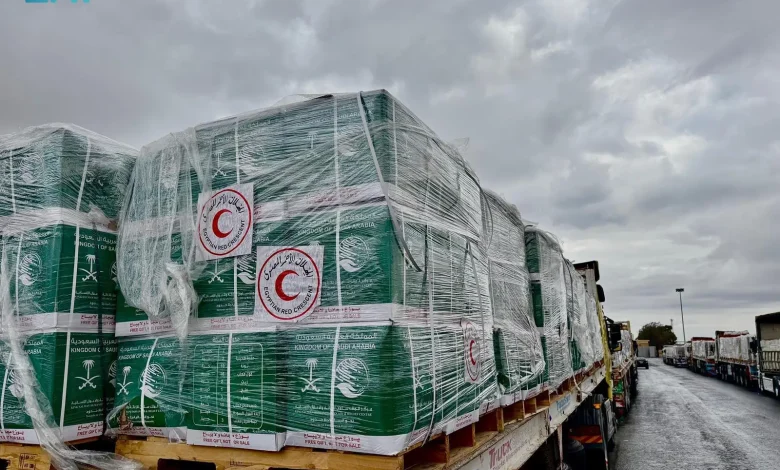 مساعدات إغاثية سعودية جديدة تعبر منفذ رفح متجهة إلى قطاع غزة مقدمة من مركز الملك سلمان للإغاثة