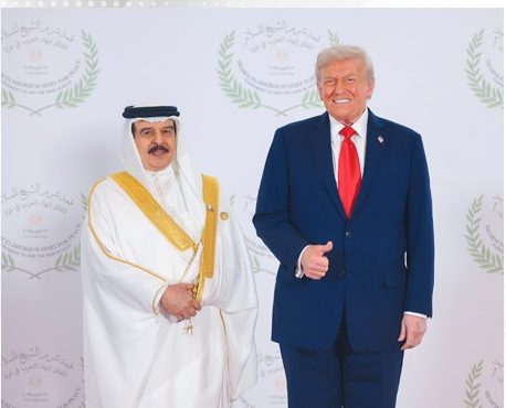 التقى صاحب الجلالة الملك حمد بن عيسى آل خليفة، ملك مملكة البحرين، اليوم، الرئيس الأمريكي دونالد ترمب، وذلك على أثناء قمة شرم الشيخ للسلام التي استضافتها مصر.