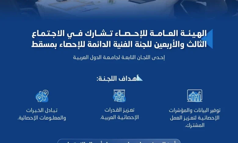 الهيئة العامة للإحصاء تشارك في الاجتماع الثالث والأربعين للجنة الفنية الدائمة للإحصاء بمسقط