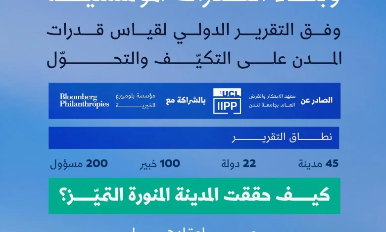 المدينة المنورة تتميز عالميًا في تقرير “مؤشر القدرات الديناميكية” بنموذجها الريادي في الابتكار الحضري