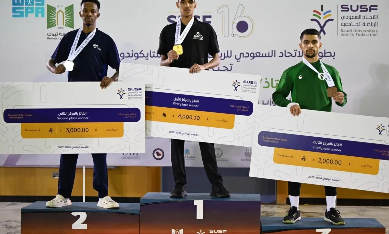 اختتمت مساء أمس بجامعة تبوك منافسات بطولة الاتحاد الرياضي للجامعات السعودية للتايكوندو (طلاب) في موسمها الرياضي السادس عشر، بمشاركة أكثر من 20 جامعة وكلية من مختلف مناطق المملكة، وذلك ضمن أنشطة الاتحاد الهادفة إلى تعزيز الرياضة الجامعية وصقل مهارات الطلاب.