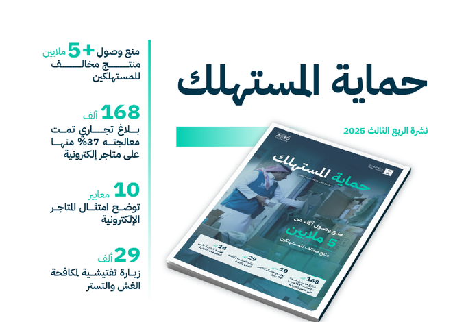 أصدرت وزارة التجارة نشرتها الربعية لحماية المستهلك عن الربع الثالث 2025، متضمنةً أبرز الأعمال والجهود في مجالات مكافحة الغش التجاري ومكافحة التستر التجاري والتجارة الإلكترونية وغيرها.