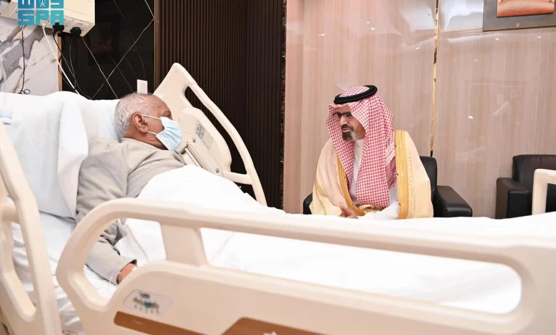 واطمأن سموه خلال الزيارة على حالته الصحية، داعيًا الله أن يمن عليه بالشفاء العاجل.