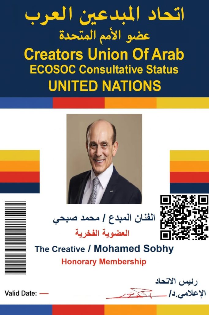 “يسرّ الاتحاد أن يمنح الفنان الكبير محمد صبحي أيضًا العضوية الفخرية لاتحاد المبدعين العرب وتبعية الأمم المتحدة ، ليكون لسان الفن والثقافة العربية في المحافل الدولية، وليشارك باسم المبدعين والمثقفين العرب في صناعة القرار العالمي في مجال الثقافة و الفنون انطلاقًا من قناعة راسخة بأن الثقافة والفن هما ركيزتان أساسيتان في بناء السلم والتنمية المستدامة.”